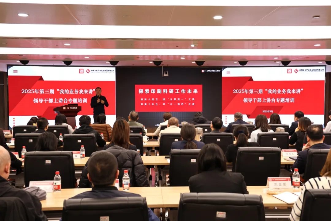 3月28日,中文发集团举办第三期“我的业务我来讲”领导干部上讲台专题培训,由中印科院党委书记、总经理赵鹏飞围绕“探索印刷科研工作未来”作专题分享。中文发集团党委副书记、总经理、总法律顾问、首席合规官韩剑出席会议。公司党委委员、副总经理常晓霞主持会议。