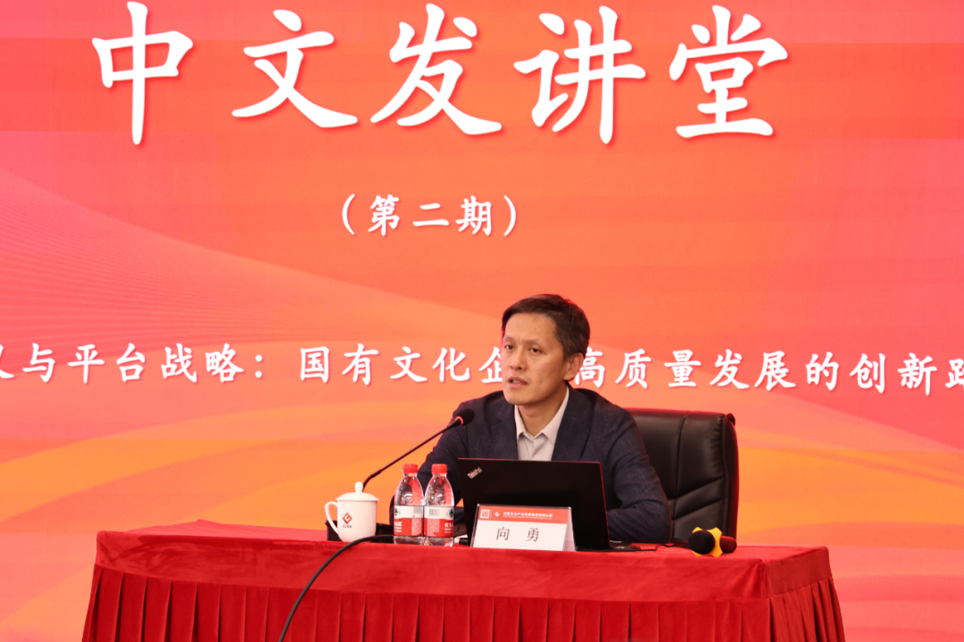 向勇教授以《长期主义与平台战略:国有文化企业高质量发展的创新路径》为主题,围绕国有文化产业高质量发展的核心要素与关键领域,进行了深入而细致地剖析,从文化产业发展的观念认知、未来趋势等多个维度,全面解读了国有文化企业的发展战略,结合丰富案例生动阐述了文化产业转型升级的多维度路径与策略,并结合中文发集团发展实际,提出宝贵建议。向勇教授的讲解不仅拓宽了干部员工视野,更激发了大家对文化产业未来发展方向的探索热情,增强了对中文发集团在文化产业领域创新发展的信心与期待。