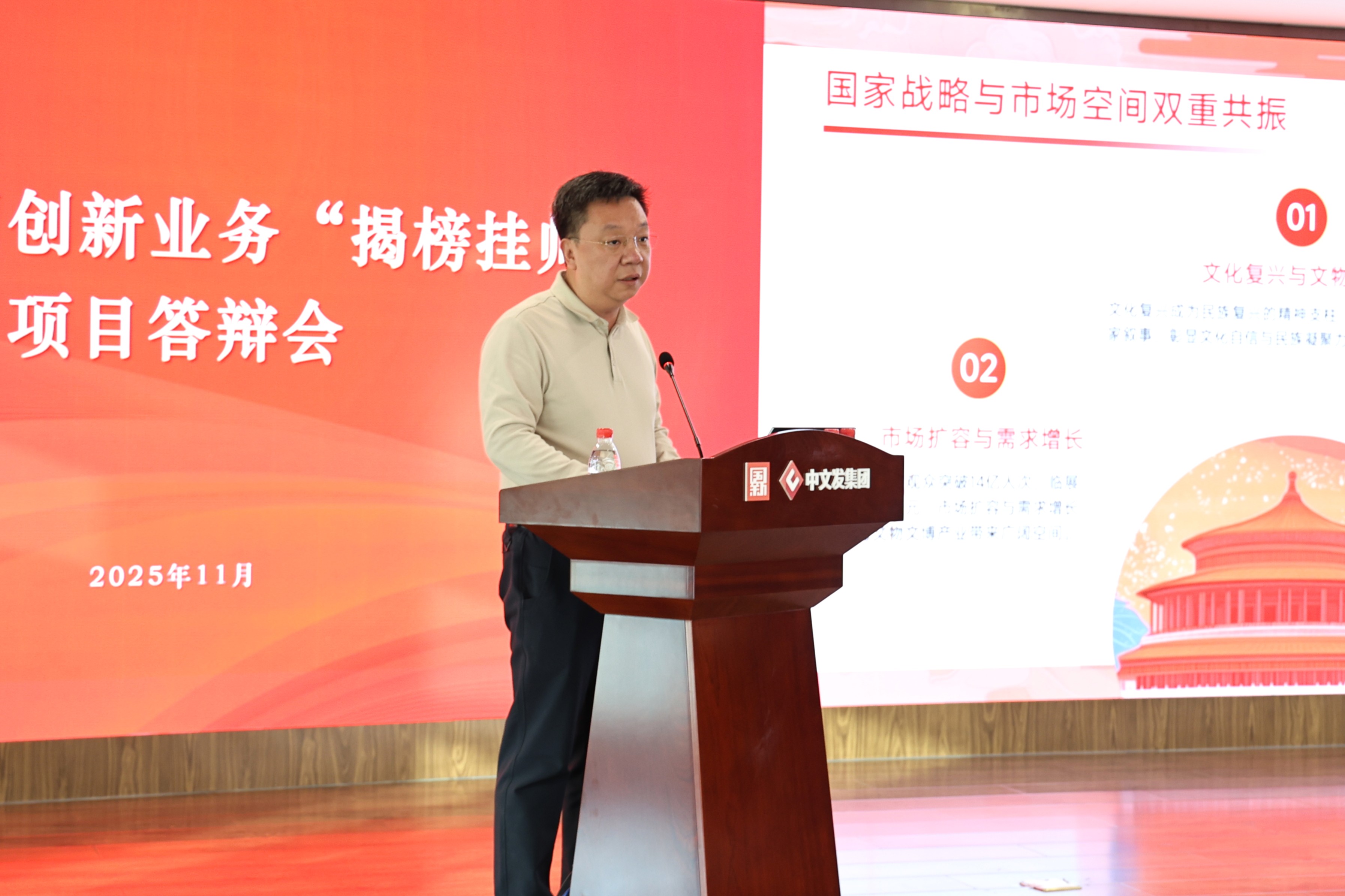 为深入贯彻落实习近平文化思想,聚焦打造“专精特新”文化产业集团,11月27日,中文发集团举办第一批创新业务“揭榜挂帅”项目答辩会。公司党委书记、董事长余小林,党委副书记、总经理、总法律顾问、首席合规官韩剑等公司领导出席会议并参加评审。中国教育科学研究院劳动与社会实践教育研究所所长王晓燕、北京大学数字人文研究中心主任王军、中国人民大学创意产业技术研究院副院长宋洋洋、中国文物交流中心对外联络处处长冯雪、北京大学文化产业研究院院长助理刘结成等外部专家出席会议并进行点评交流。