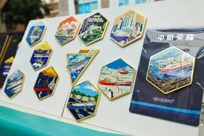 中船科技的文创设计,紧扣着国民的集体记忆。“山东舰劈波斩浪、‘雪龙2号’驰骋极地、‘奋斗者号’深潜马里亚纳海沟……这些瞬间让每个中国人热血沸腾。”李佳钰介绍,设计团队提取这些标志性工程的符号元素,舍去复杂的工业参数,打造出轻量化、易携带的文创产品,“让大家在使用中,就能重温这些激动人心的时刻,感受家国力量。”