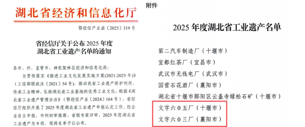 中文发集团所属六0三、六零五文创园获评“2025年度湖北省工业遗产”